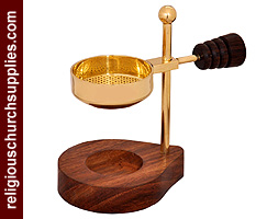 Brass Incense Burner with wooden T Light Holder-IB-20017